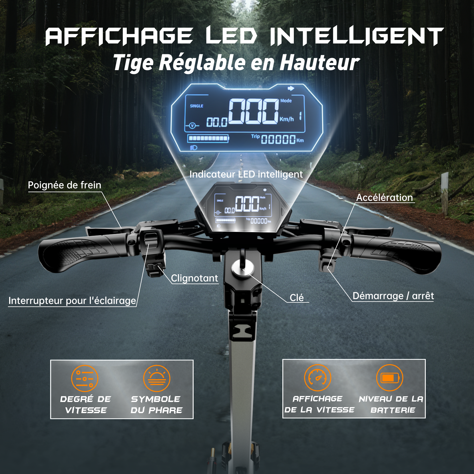 · 3 speed modes, Max 75 km/h (46 mph).